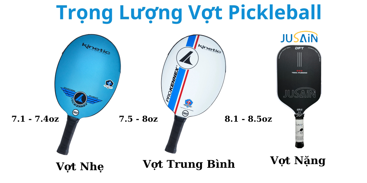 💡 Mẹo: Nếu bạn mới chơi, nên bắt đầu với vợt trung bình để làm quen trước khi chuyển sang vợt nặng hoặc nhẹ tùy phong cách.