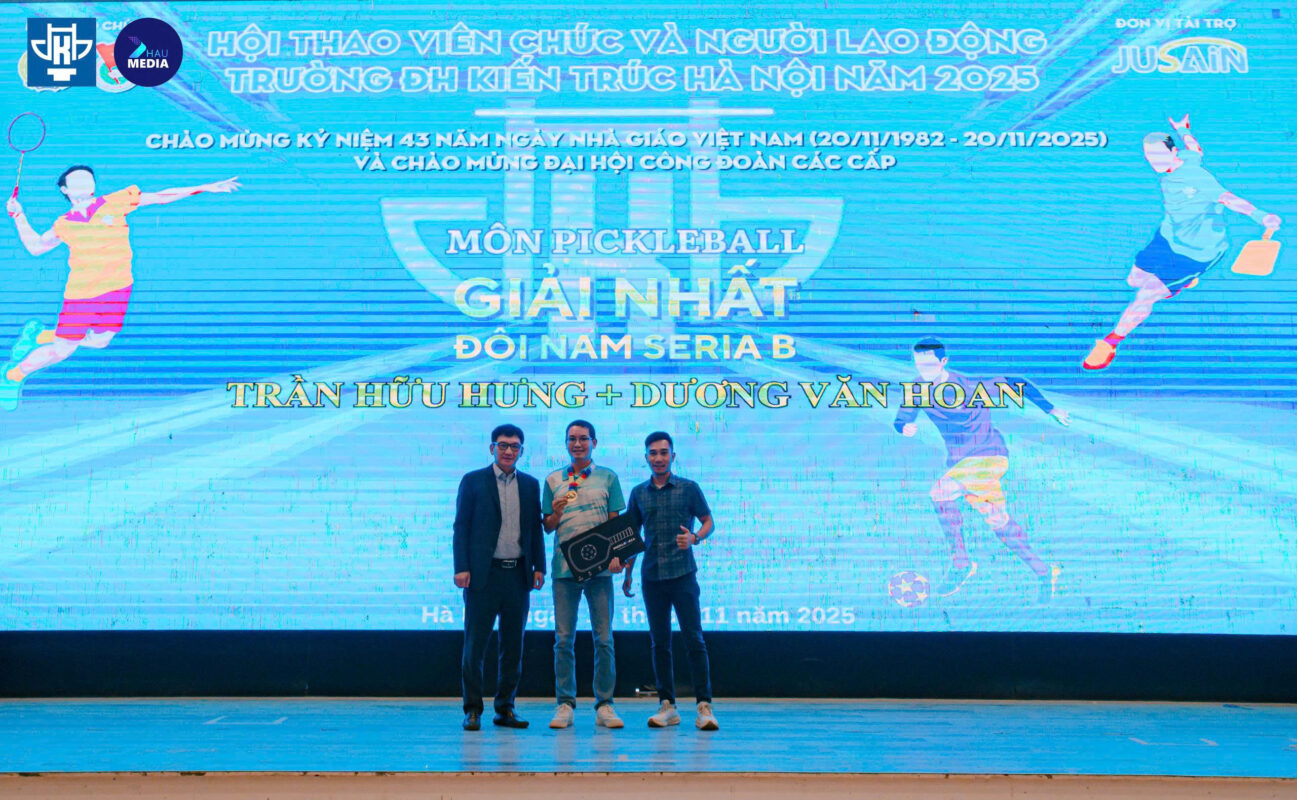 Tháng 11/2025, JUSAIN – thương hiệu sản xuất vợt pickleball chuyên nghiệp – vinh dự đồng hành cùng Hội thao Trường Đại học Kiến Trúc Hà Nội, mang đến một mùa giải đầy năng lượng, sáng tạo và tinh thần thể thao rực lửa của sinh viên kiến trúc.