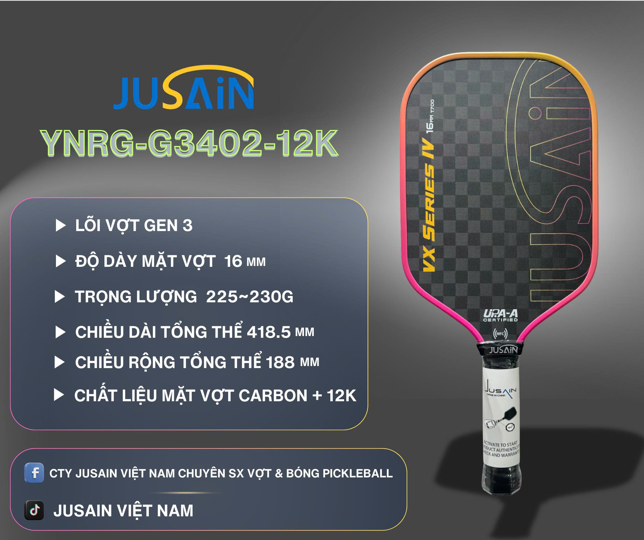 | Độ dày vợt | 16mm |