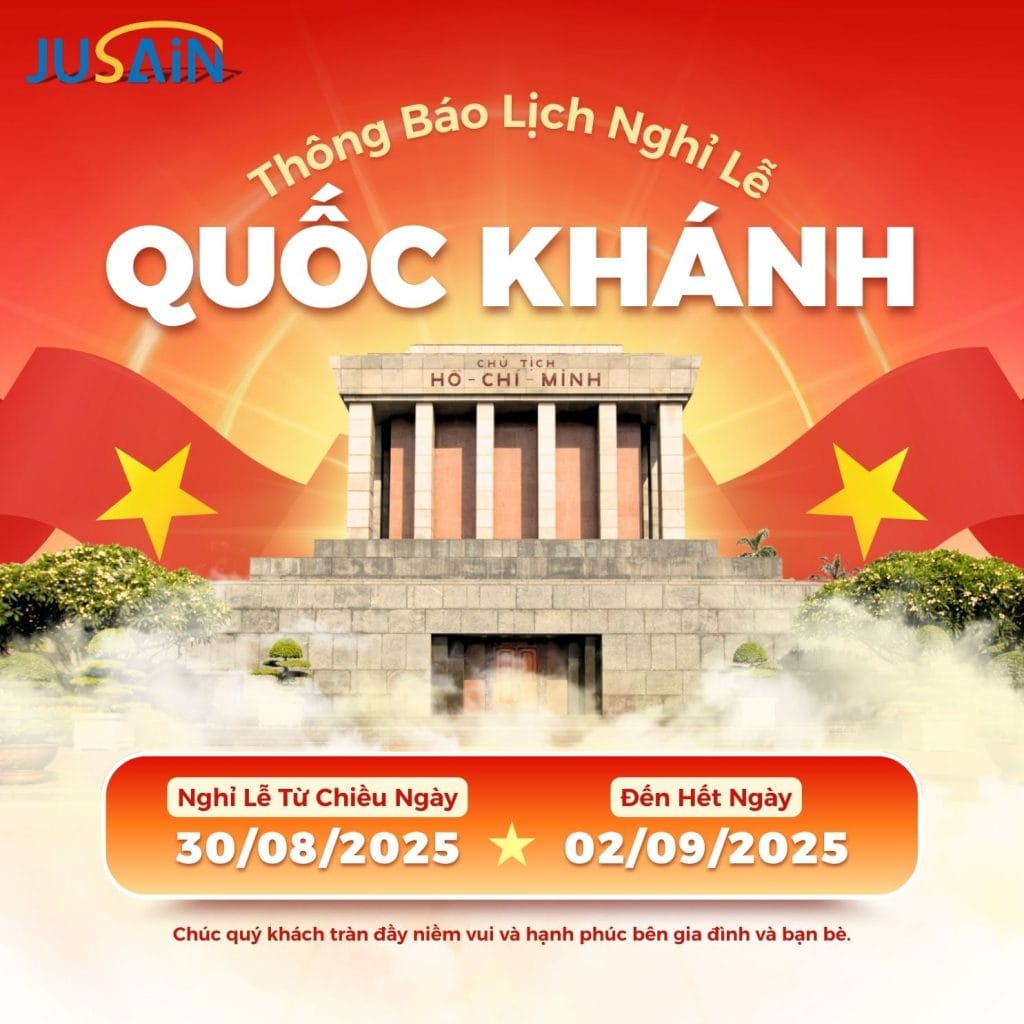 Trong suốt thời gian nghỉ lễ, các hoạt động sản xuất, tư vấn và hỗ trợ khách hàng sẽ tạm ngưng. Quý khách vui lòng chủ động sắp xếp công việc và liên hệ với Jusain trước hoặc sau kỳ nghỉ để được phục vụ tốt nhất.